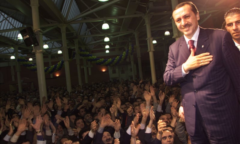 | Erdoğan greets his Justice and Development party supporters in Istanbul, about a month after the party won the 2002 general election. AP |